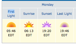 Screen Shot 2014-10-20 at 1.58.12 pmNotice how energy starting to be produced just before 5AM. Well, this is a problem, since according to the almanac, first light is not until 5:46AM, and sunrise is not until 6:13am! Therefore, according to the portal, the solar system is generating in the pitch black for about an hour, and then generating energy pre-dawn for another 30 minutes. We do not have the data yet, bit it is a fair assumption that the timezone data is incorrect. Given that the timezone is entered as a zone, I suspect that their timezone database is actually wrong.