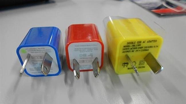 There is a story in the Sydney Morning Herald today about how a woman has died apparently as a result of a faulty USB charger purchased in here in Sydney. A photo of some of the chargers, possibly of the same model that allegedly caused the death, appear to the right. Unfortunately this photo is the best I could find of the pins. Looking very carefully you will see that the pins are totally metal. This gives you the idea that these devices should not be sold in Australia.